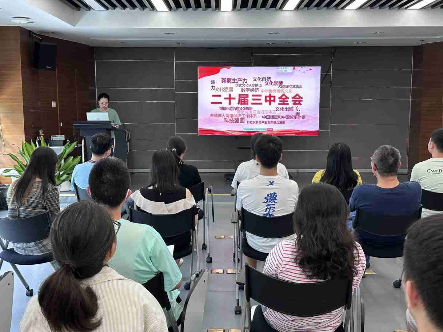 与会人员深入学习《决定》内容。。。。党的二十届三中全会提出必须增强文化自信,,,发展社会主义先进文化,,弘扬革命文化,,传承中华优秀传统文化,,,,加快适应信息技术迅猛发展新形势,,,,构建更有效力的国际传播体系,,这为广大文化产业工作者指明了奋斗方向。。。。