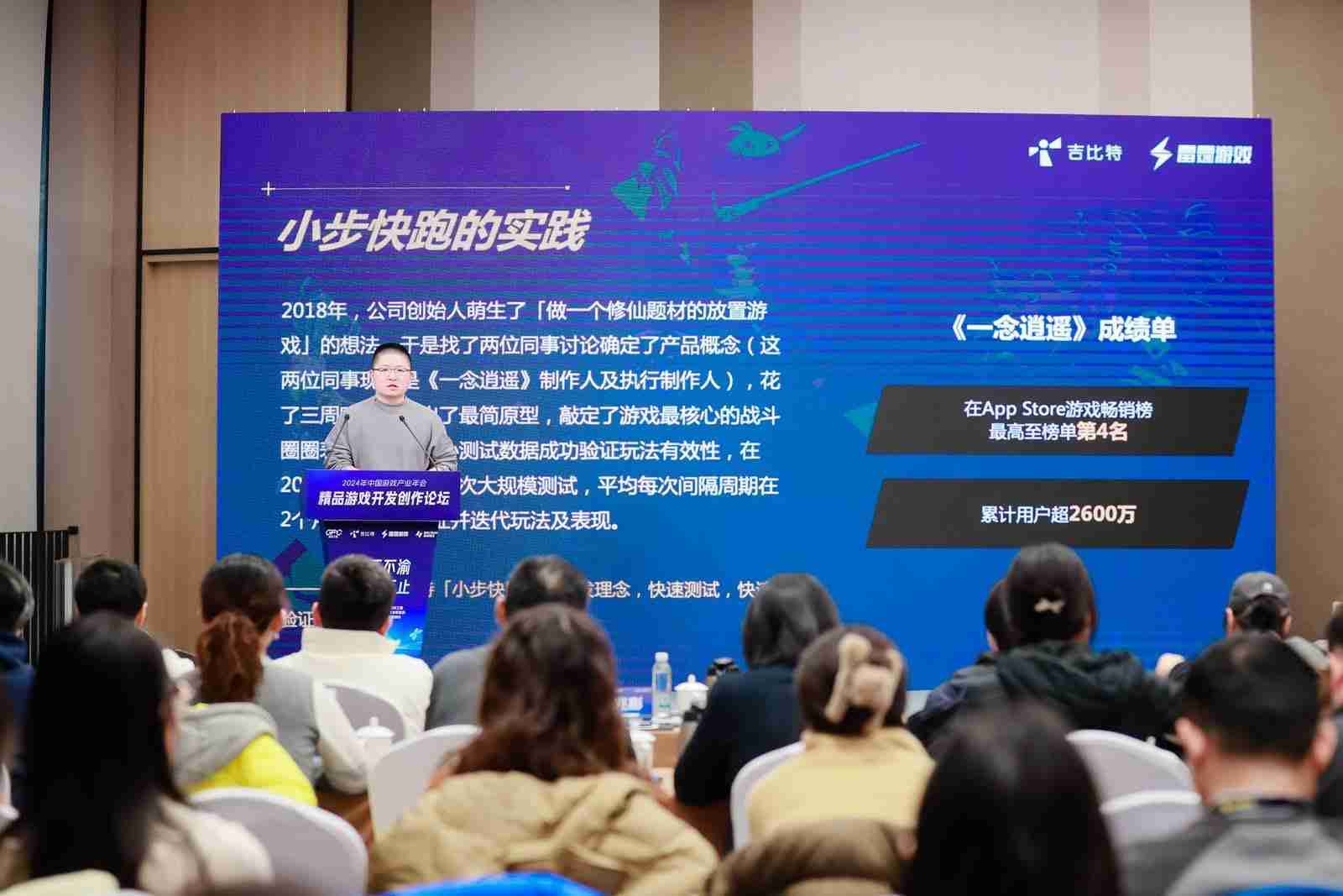 以《一念逍遥》为例,,,2018年公司创始人萌生想做修仙题材的放置游戏的想法,,,于是找了两位同事讨论了一下产品的概念,,这两位现在是项目的制作人,,,,花了三周的时间把原型做出来,,,并且确定最初的战斗原型,,以及整个养成的节奏。。通过几次版本迭代验证后,,,也确定后面的内容应该怎么拓展,,,,最终在一年左右时间这个项目上线了。。。。当时我们内部有同事看到《⼀念逍遥》上线,,,认为品质还不够完美,,,但是整体营收还不错。。。就在想那是不是以后我们都做这样的产品??但实际这是错误的认知,,,,我们内部不是这么看的。。。。游戏在那个时间点上市,,,因为有些市场的考量和营销点的考虑,,,并不是希望所有项目都是这样。。。。如果它有更好的契机,,,希望它可以做得更大、、、更好,,希望在内核玩法确定之后,,外围投入可以越大越好,,所以后面的几个项目是往这个思路上做。。